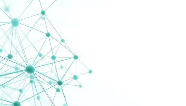 abstract network connection background, A network of interconnected nodes and lines in a teal color on a white background