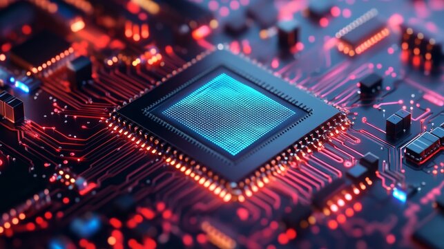Abstract technology chip lines rising vertically over digital binary code background, futuristic circuit board pattern symbolizing data flow and innovation in modern computing systems