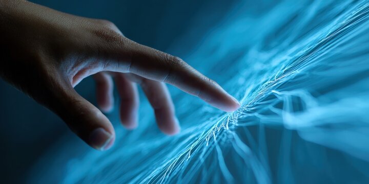 Finger touch ai chip neural network connection glow digital intelligence future technology system automation logic brain data