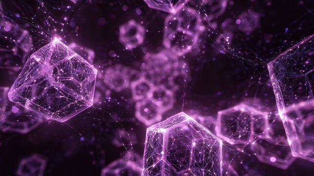 Experience the future with mesmerizing purple geometric shapes connected by glowing lines, perfect for technology, innovation, or futuristic concepts and designs, dynamic backdrop