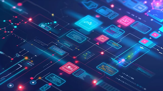 Futuristic Digital Data Processing Interface With Neon Graphics Images