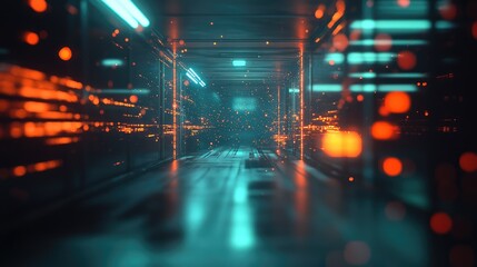 Abstract tunnel representing big data flow, processing, and communication in a modern, interconnected digital world with fast moving information and network connections