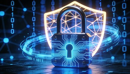 Futuristic digital security with circuit lock icon