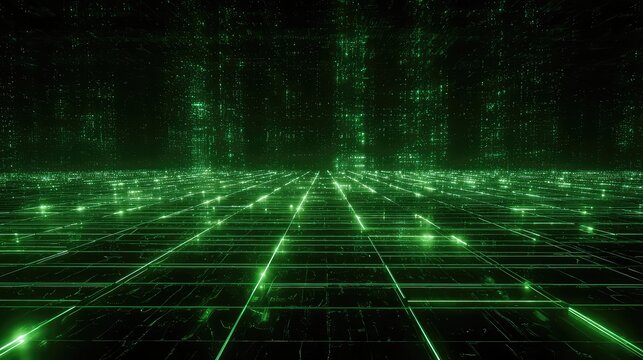 Futuristic Digital Data Stream With Green Binary And Code Grids Images
