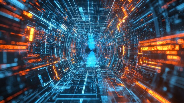 Futuristic Digital Data Tunnel With Interactive Analytics Images
