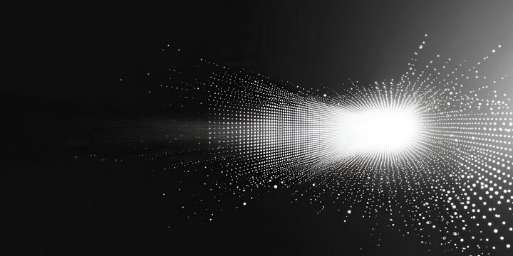 Abstract digital data flow visualization with luminous dots and lines forming an intricate pattern on a black background. Displaying data flow with motion and light.