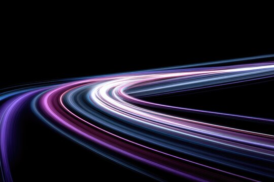 Abstract visualization of a digital wave, with shimmering blue and purple dots against a black background.