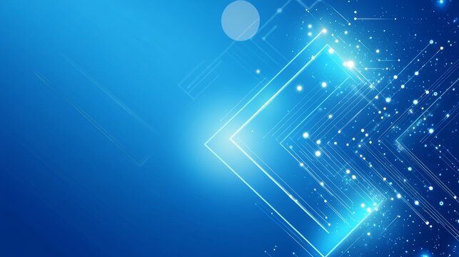 Abstract glowing blue arrow with lighting effects and a grid of lines on a blue background, representing a futuristic technology concept, highlighting high-tech advancements and digital innovation.
