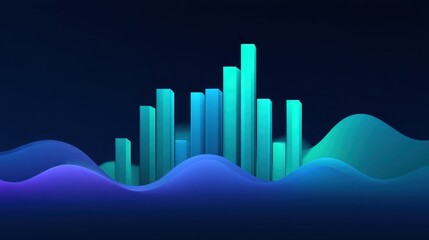 Abstract visualization of data trends with vibrant bars and flowing waves in a dark background shows growth, fluctuation, and analysis in business and technology