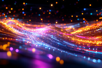 Generative AI depiction of luminous digital waveforms and particle effects illustrating data flow