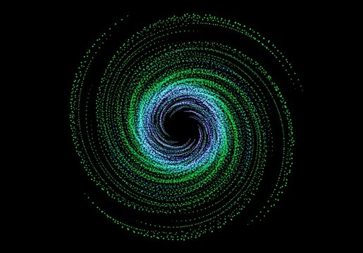 Magical swirling vortex of iridescent particles against a dark, cosmic backdrop