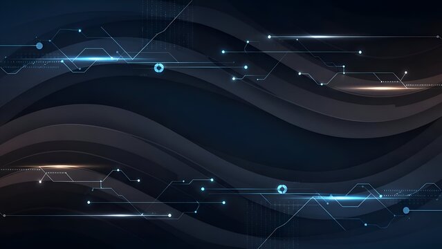 Abstract Dark Blue Background with Flowing Curves and Glowing Lines Dynamic Lighting and Technological Accents Futuristic Aesthetic Digital Design Pattern