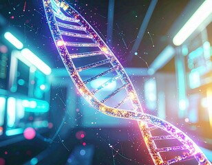 Detailed view of a digital DNA strand representing genetic information in a futuristic design