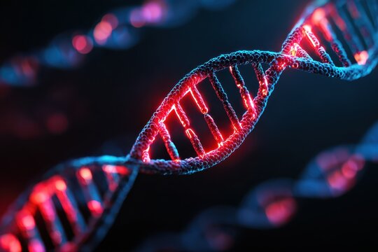 Glowing Digital DNA Double Helix, Futuristic Biotechnology Illustration