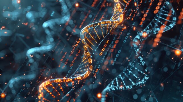 Digital DNA Data Storage Conversion Process Displayed on Computer Screen Concept