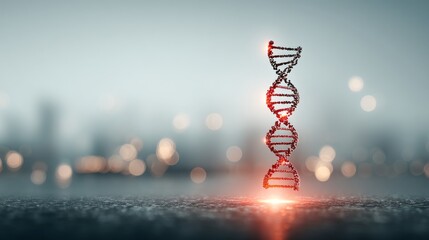 DNA helix structure standing on glowing surface