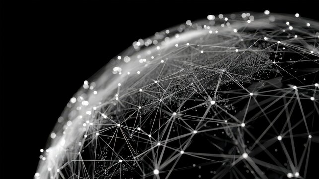 Digital Web of Connections: An abstract representation of the digital world, showcasing a complex web of interconnected nodes and lines, symbolizing global connectivity and data flow.