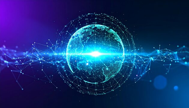 Abstract digital artwork of interconnected networks surrounding Earth