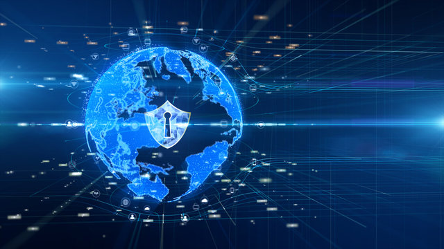 Shield icon on secure global network , Digital Data Network Connected, Cyber security concept. Earth element furnished by Nasa