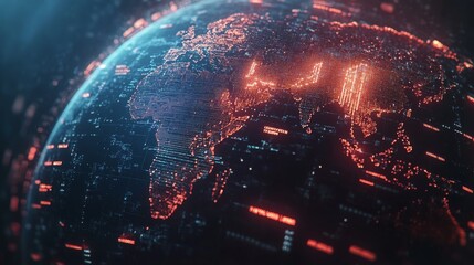 A digital representation of the world with red glowing continents