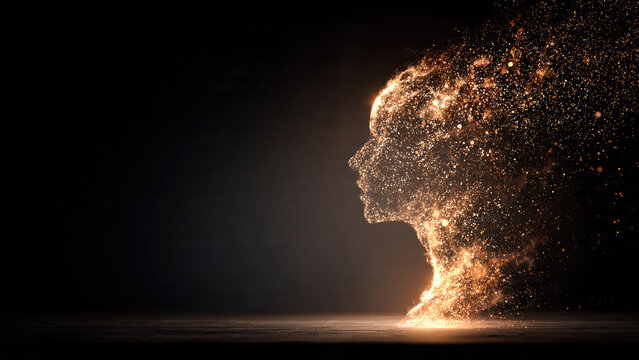 Abstract human head made of golden particles