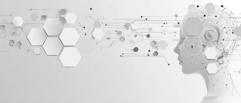 Human-AI collaboration concept. Businessman interface digital icon of a human-AI hybrid head, synergy between human intelligence and artificial intelligence  in modern technology and innovation.