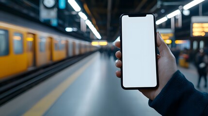 Smart Display at Station: A hand holds a smartphone with a blank screen, offering a modern perspective.