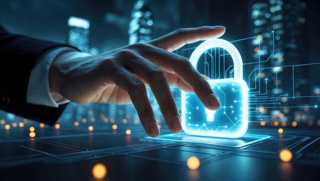 Glowing padlock representing digital cyber security