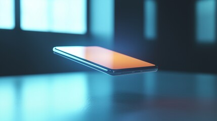 An iphone screen floating in the air. Mobile digital 3d phone with hologram. A futuristic smartphone with a realistic interface screen. An iphone display hovering in midair lifestyle.
