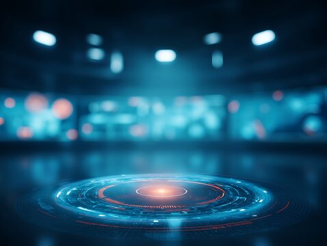 Futuristic Sci - Fi Stage with Circular Element and Blue Tones