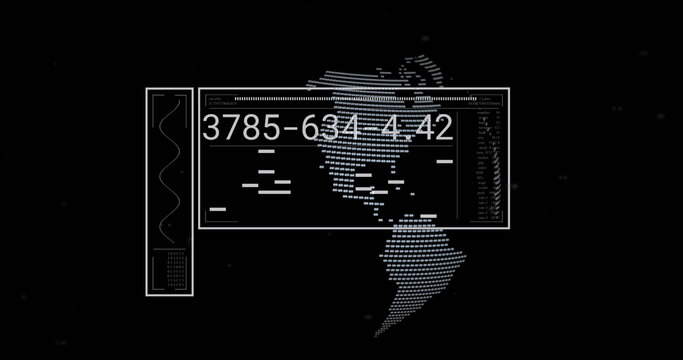 Holographic interface projecting index table over Earth, with bar or line charts, circular indicator