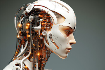 Woman Face detection and recognition over the Technology connection shape background, Biometric Verification,  Computer vision and artificial intelligence concept