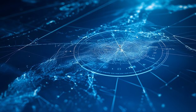 Abstract Blue Network with Circular Element and Pinpoint