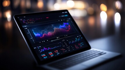 Futuristic Financial Graph Interface with Neon Glow and Trend Analysis for Business and Investment Concepts
