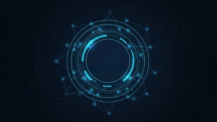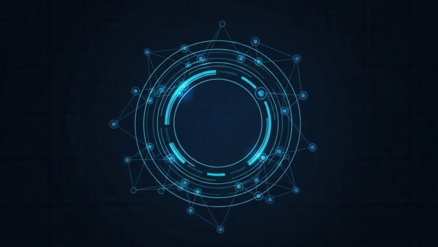 Abstract futuristic technology interface with glowing blue circles and digital elements.