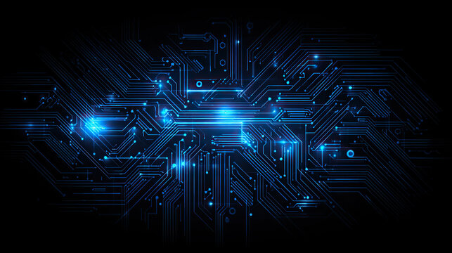 Abstract blue circuit design with glowing digital aesthetic, symbolizing futuristic technology and innovation