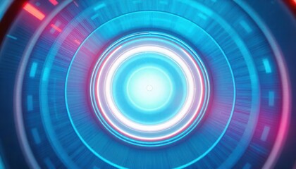 Abstract Neon Cyberpunk Tunnel: Futuristic Sci-Fi Glowing Rings, Digital Data Stream, Vivid Pink and Blue Color Palette, High-Tech Interface Background.