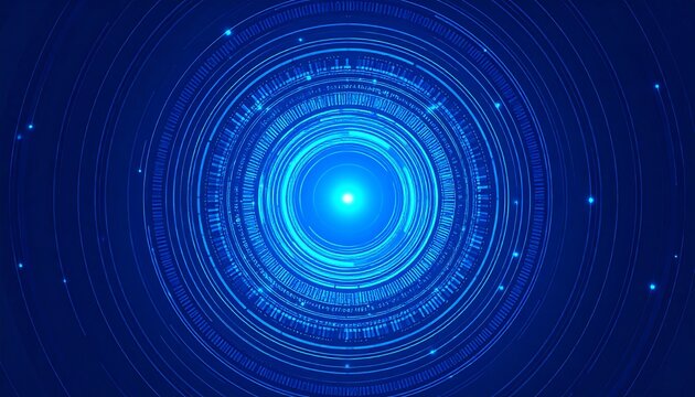 A futuristic digital eye with blue circuits and glowing light on a dark background