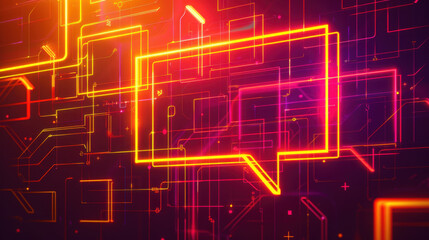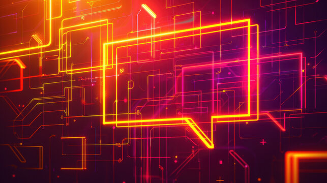 Neon chat bubble design with vibrant colors and digital patterns, symbolizing communication and technology