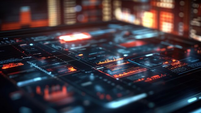 Futuristic digital interface with holographic data display