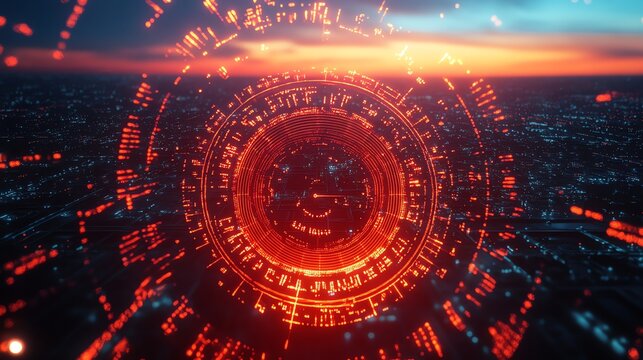 Futuristic digital interface with glowing circular patterns