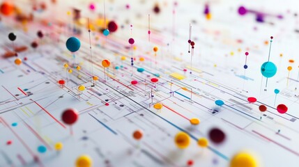 A detailed close-up of a complex data visualization graphic, including various types of charts and graphs with color-coded data points and annotations. db