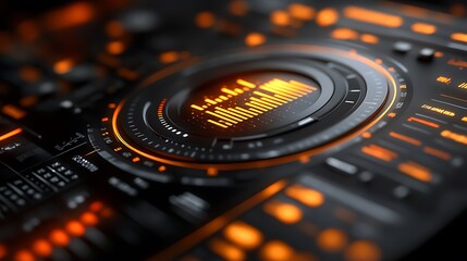 Futuristic interface displays data visualizations with glowing neon accents, showcasing charts, graphs, and digital readouts for a modern, high-tech aesthetic.