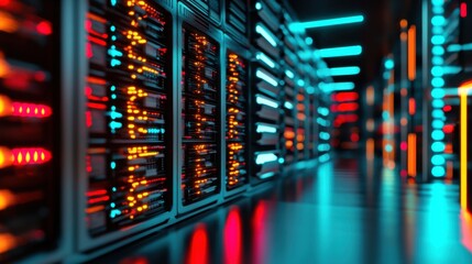 Stunning Digital Cloud Computing Concept with Neon Lights and Data Visualization Elements in a Futuristic Style for Technology and Innovation Themes