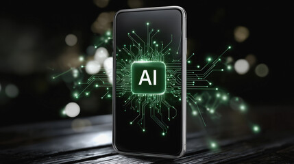 Smartphone with AI technology glowing circuit patterns digital innovation modern design technology concept futuristic interface connectivity data