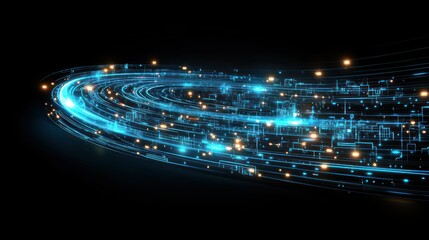 Futuristic circuit board with glowing blue digital network lines, technology innovation, abstract background