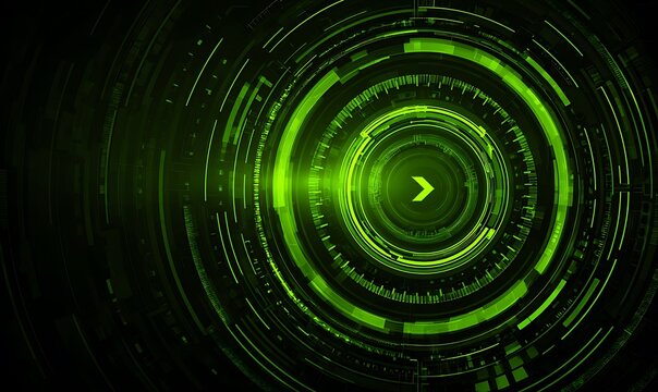 Abstract green digital concentric circles and lines