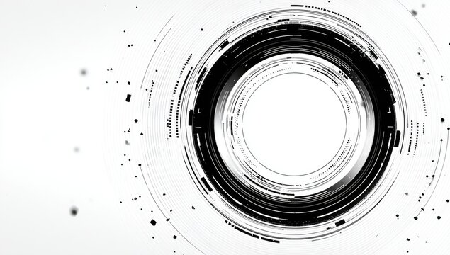 Abstract blue glowing digital interface with concentric circles and data lines.
