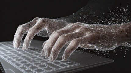 A focused individual's hands fly across a keyboard, bringing a vibrant stream of code to life. Immerse yourself in the digital landscape, where the merging of technology and human effort unfolds.