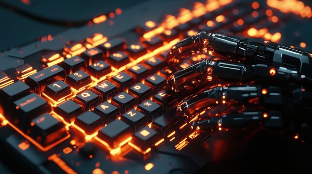 Futuristic Glowing Keyboard with Hand Typing for Programming and Digital Innovation